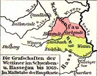 Damit stellte der später kurz als „Leipziger Teilung“ bekannt gewordene Vorgang den ersten dauerhaften Rückschlag im bis dato scheinbar unaufhaltsamen Aufstieg der Wettiner im mitteldeutschen Raum dar. Erinnern wir uns: Um die Jahrtausendwende waren die Wettiner Grafen noch ein Geschlecht adliger Strauchdiebe und Wegelagerer aus der Umgebung von Halle/S. und hatten damit dort in etwa dieselbe Funktion inne, wie zeitgleich die Grafen von Schwarzburg in den Gebirgstälern zwischen Arnstadt und Rudolstadt. |